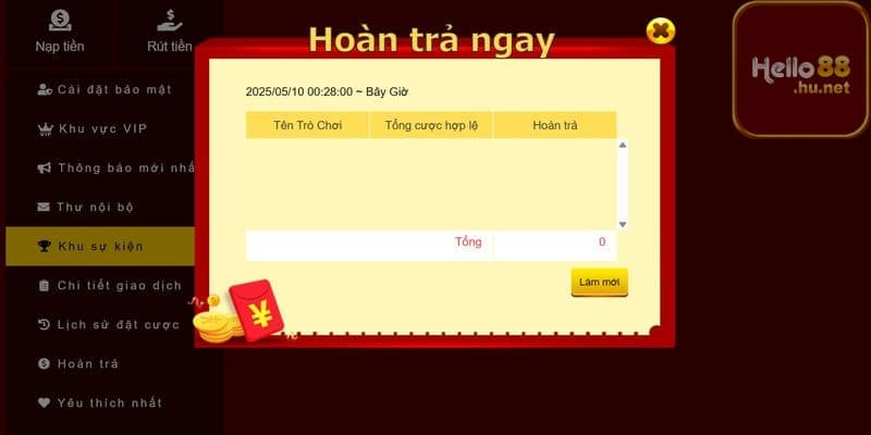 | Hoàn trả Casino | Lên đến 1.5% không giới hạn | Tất cả thành viên | Tham gia các trò chơi thuộc hello 88 đối với casino trực tuyến |