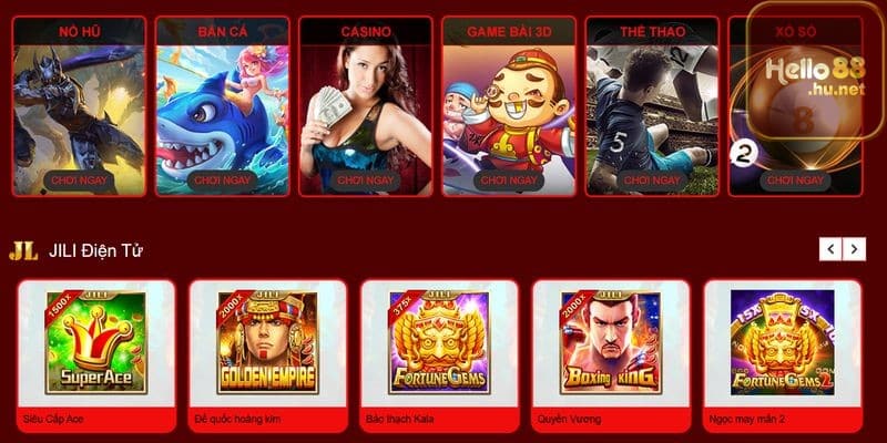 Hello88 tự hào mang đến hệ sinh thái cá cược đa dạng với hàng nghìn sản phẩm giải trí hấp dẫn, đáp ứng mọi sở thích và phong cách chơi khác nhau. Từ những tựa game truyền thống đến các sản phẩm hiện đại với công nghệ đỉnh cao, Hello88 cam kết mang đến trải nghiệm cá cược chân thực, công bằng và cơ hội trúng thưởng lớn cho người chơi.