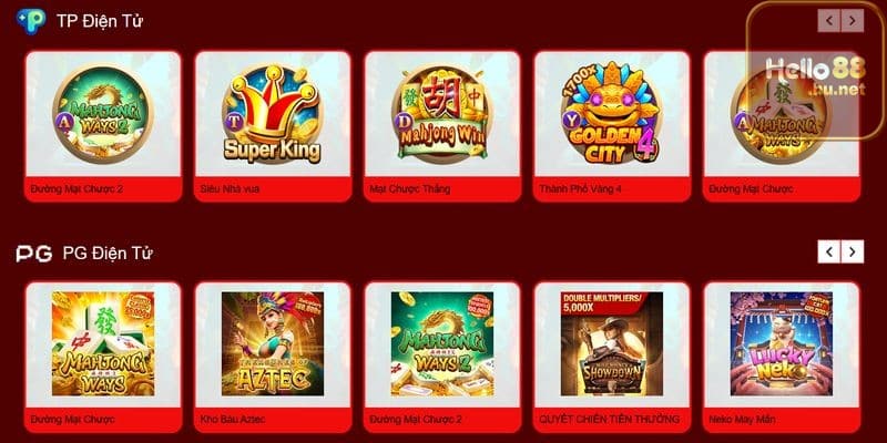 Điểm nổi bật của nổ hũ Hello88 là hệ thống jackpot lũy tiến liên tục tăng giá trị, có thể đạt hàng tỷ đồng và sẵn sàng “nổ” bất kỳ lúc nào. Người chơi có thể dễ dàng tìm thấy các tựa game phổ biến như Gonzo’s Quest, Starburst, Book of Dead hay những game slot mang đậm văn hóa châu Á như Dragon’s Luck, Mahjong Ways 2.